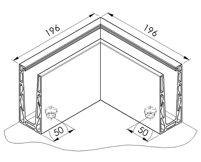- Wymiary zewnętrzne kątownika – 196mm