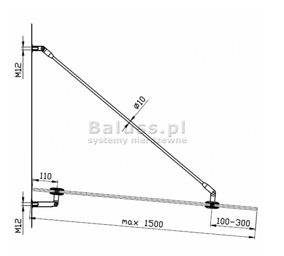 • Możliwość regulacji montażu uchwytów punktowych na elemencie mocowania „Naciąg – szkło” i „Ściana – naciąg” – długość pręta w zestawie – 400mm