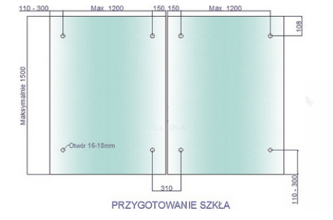 Podwójne mocowanie daszka szklanego typu T- wersja A