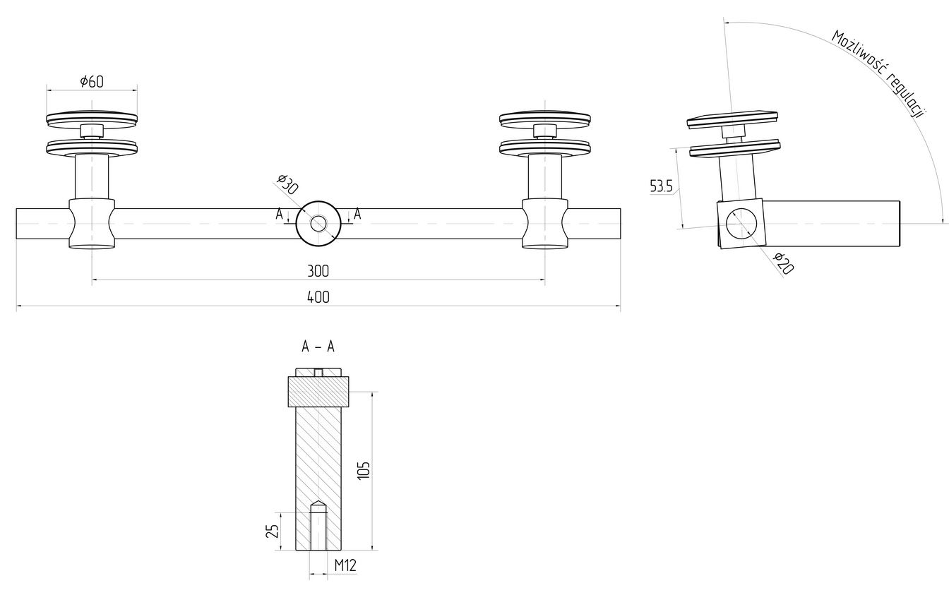 • Uchwyty montażowe szkła – uchwyt punktowy fi 60mm