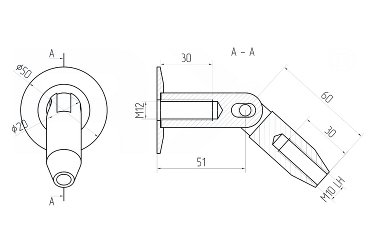 Pojedyncze mocowanie daszka szklanego fi 60, 1 otwór montażowy M12, AISI 316