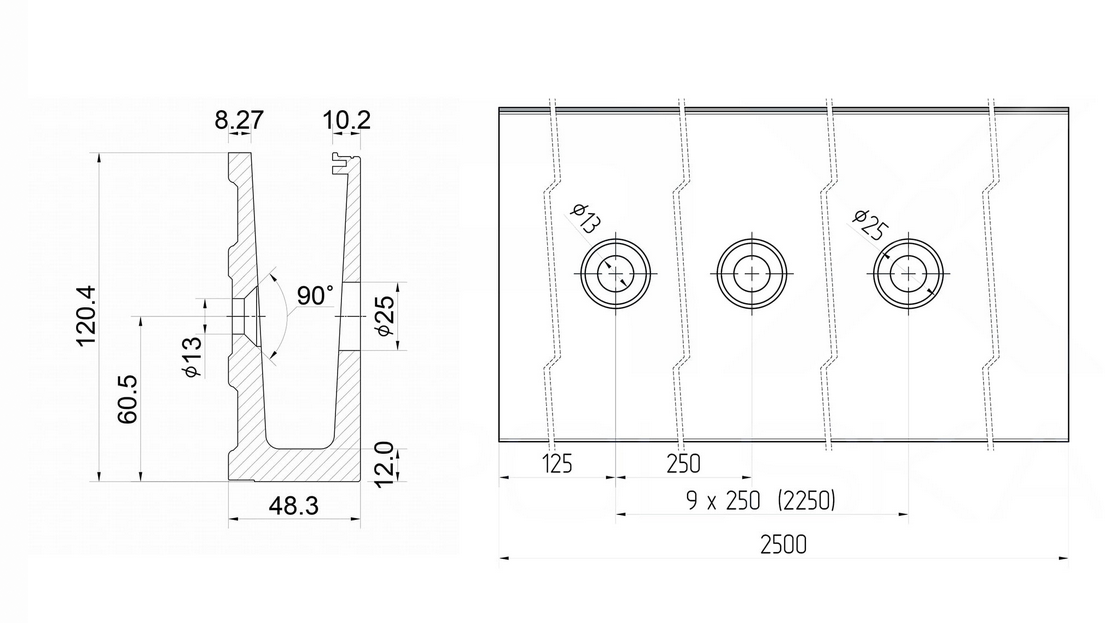 Profil montowany do boku schoda AL/ELOX/Satin, odcinek 5m