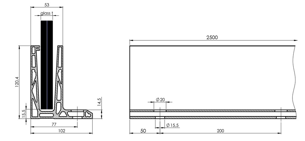 Profil montowany do podłogi "L" AL/ELOX/Satin ECO, odcinek 2,5m