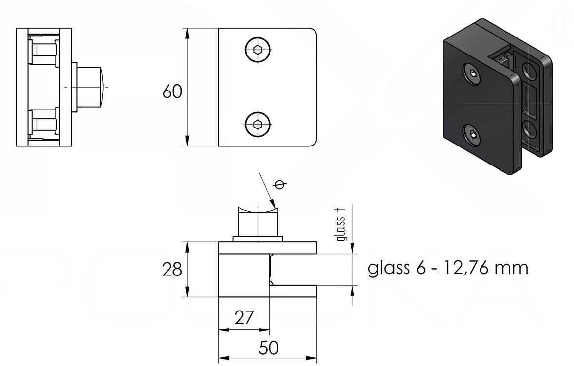 - Można stosować do balustrad i słupków z mocowaniem bocznym