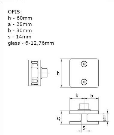 Uchwyt do szkła 60x60x28mm łączący, dla rury 42,4 - szlifowany