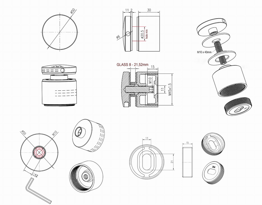 | Minimalny otwór w szkle | ø 20mm |
