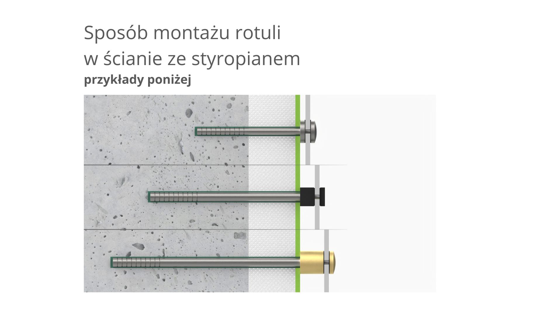 Wymiar pręta montażowego w rotuli: M10x40, w zestawie brak pręta do montażu w murze
