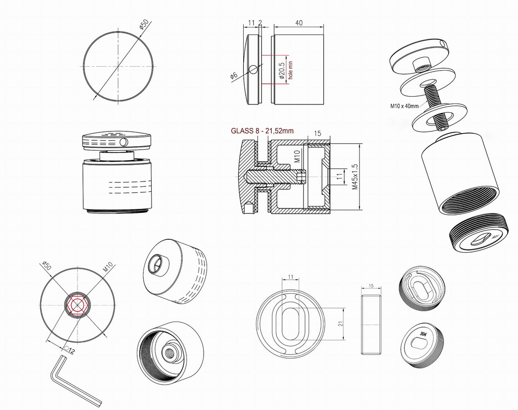 | Średnica rotuli/grubość szkła | Ø 50 (zakres szkła 8-21,52mm) |