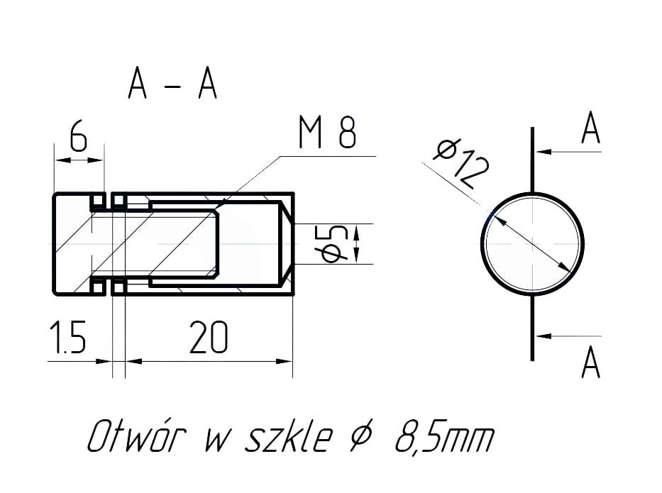 | Minimalny otwór w szkle | ø 8,5mm |